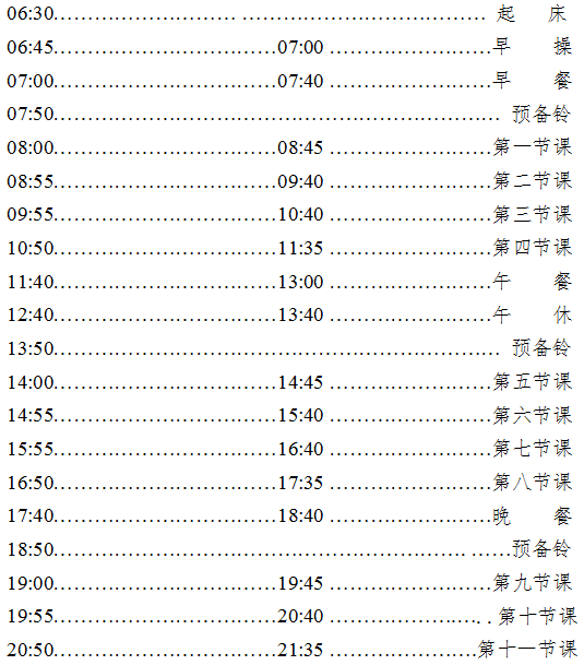 备注:1.学生课外活动和政治学习时间为周三下午,周三第六、七节课可适当安排教学活动。