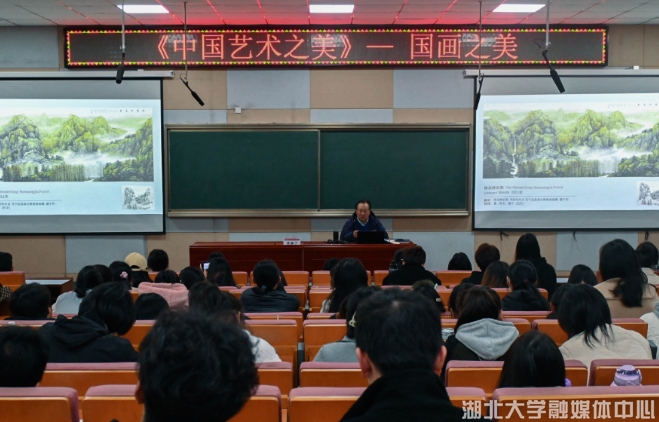 讲座开始前,同学们通过《大写湖北人》专题片,了解了董继宁从一名对艺术全然无知的知识青年到艺术大家再到传播艺术的领路人,立志“为祖国山河立传”的感人事迹。