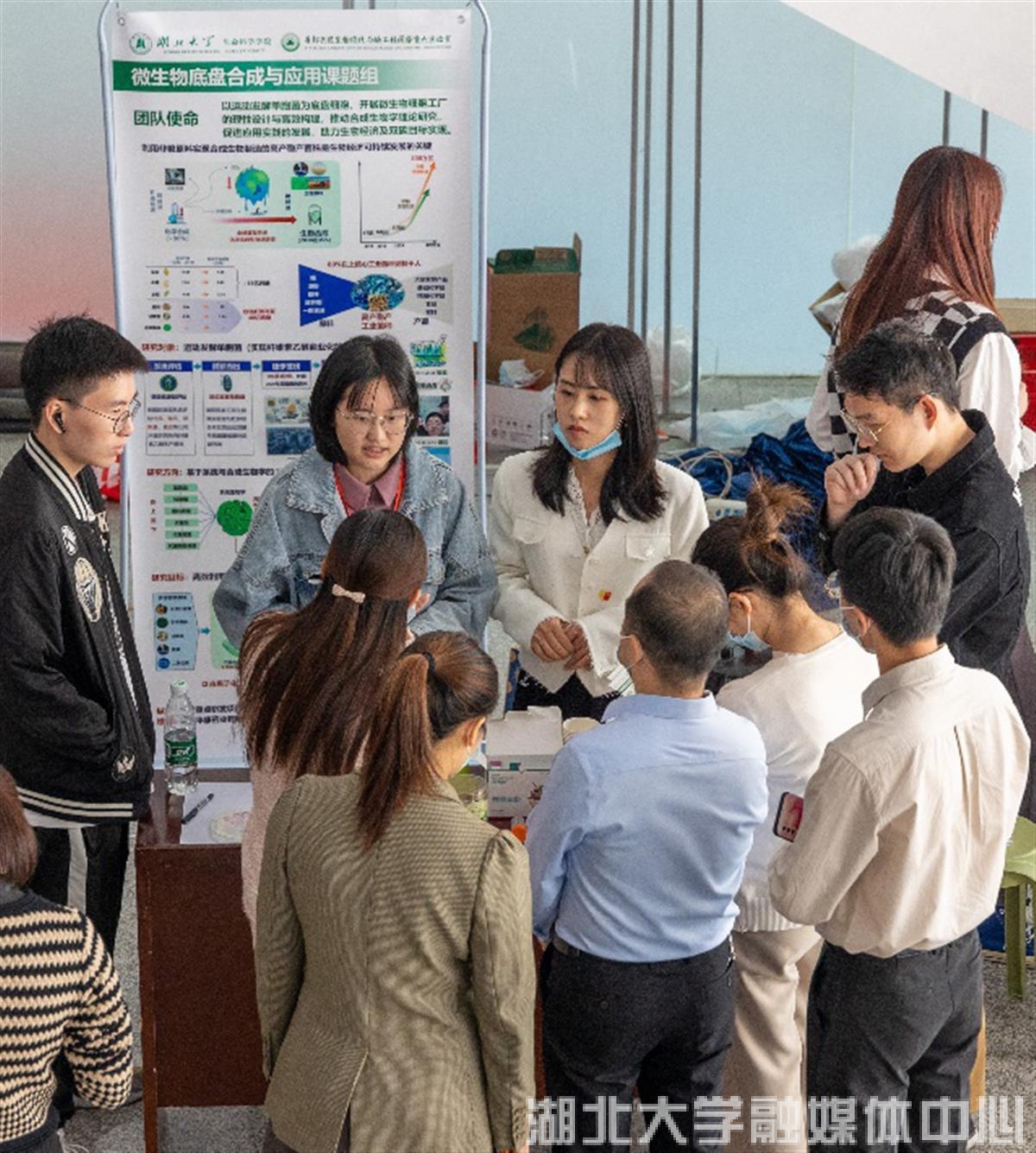 在微生物工程课题组的展台前,课题组展出了各式各样的面膜及护肤品,该团队通过开展聚谷氨酸、植物天然产物等生化产品的代谢工程育种和发酵过程控制优化,实现产品的微生物“智”造,助推相关产业技术升级与高质量发展。
