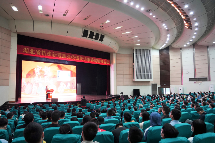 报告团六名成员分别是湖北省卫健委副主任、武汉市金银潭医院院长张定宇,华中科技大学同济医学院附属同济医院心内科副教授周宁,武汉市江夏区金口街社区卫生服务中心技士甘如意,武汉市公安局江岸分局新村街派出所副所长邵玉春,武汉市青山区工人村街青和居社区党总支书记桂小妹,中建三局安全总监、火神山医院项目指挥部工程组组长赵军。他们均是获得全国和省级表彰的先进个人,报告会现场,他们讲述着投身抗疫一线的奋斗故事和难忘经历,从救死扶伤、火神山医院建设、社区防疫等角度,真情阐释了“生命至上、举国同心、舍生忘死、尊重科学、命运与共”的伟大抗疫精神。