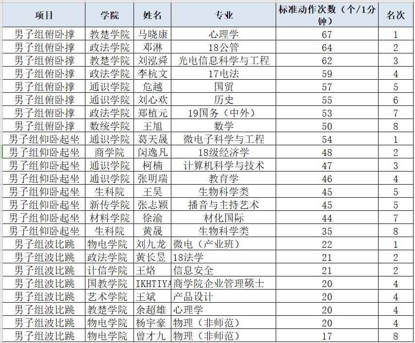 为了调动学生锻炼积极性,促进学生身心健康发展,5月20日至27日,国产亚洲精品久久久久久久_无码AV免费精品一区二区三区_99久久久无码国产精品免费人妻_精品人妻无码一区二区三区在线_无码专区久久综合久综合字幕_久久精品国产一区二区三区四区_真实一级一级一片免费视频_特级精品毛片免费观看_国产成人无码AA片免费看开展“云动体育”争霸赛。赛事设置俯卧撑、仰卧起坐等5类运动项目。比赛采取男女分组的形式,参赛学生按照比赛要求拍摄并上传参赛视频,按照1分钟内运动完成项目的次数进行评比。