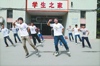 3月7日中午11点30分,一群下课回宿舍的男生随着突然响起的音乐声集中起来,不顾他人惊讶的眼光,跳完一段2分钟舞蹈,然后齐喊口号最后快速散开。