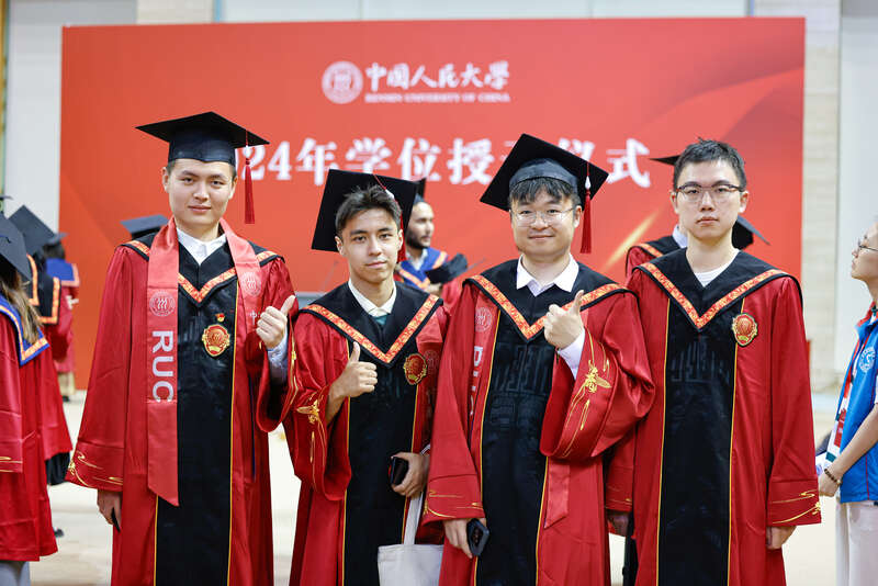 中国人民大学2024年学士学位授予仪式现场,毕业生合影留念。中国人民大学供图
