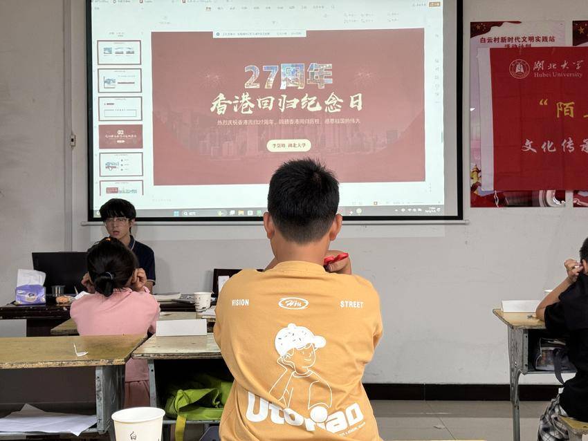 今年恰逢香港回归27周年,为了激发孩子们心中对祖国团结、统一的爱国热情和民族自豪感,李崇培和志愿团队成员一起为孩子们精心设计了“紫荆花盛开”声乐学习课程。课堂上,李崇培以趣味小魔术引入教授内容,孩子们踊跃举手,提问声此起彼伏。在学习了1997年香港回归这一历史事件后,合唱声久久围绕在教室中。