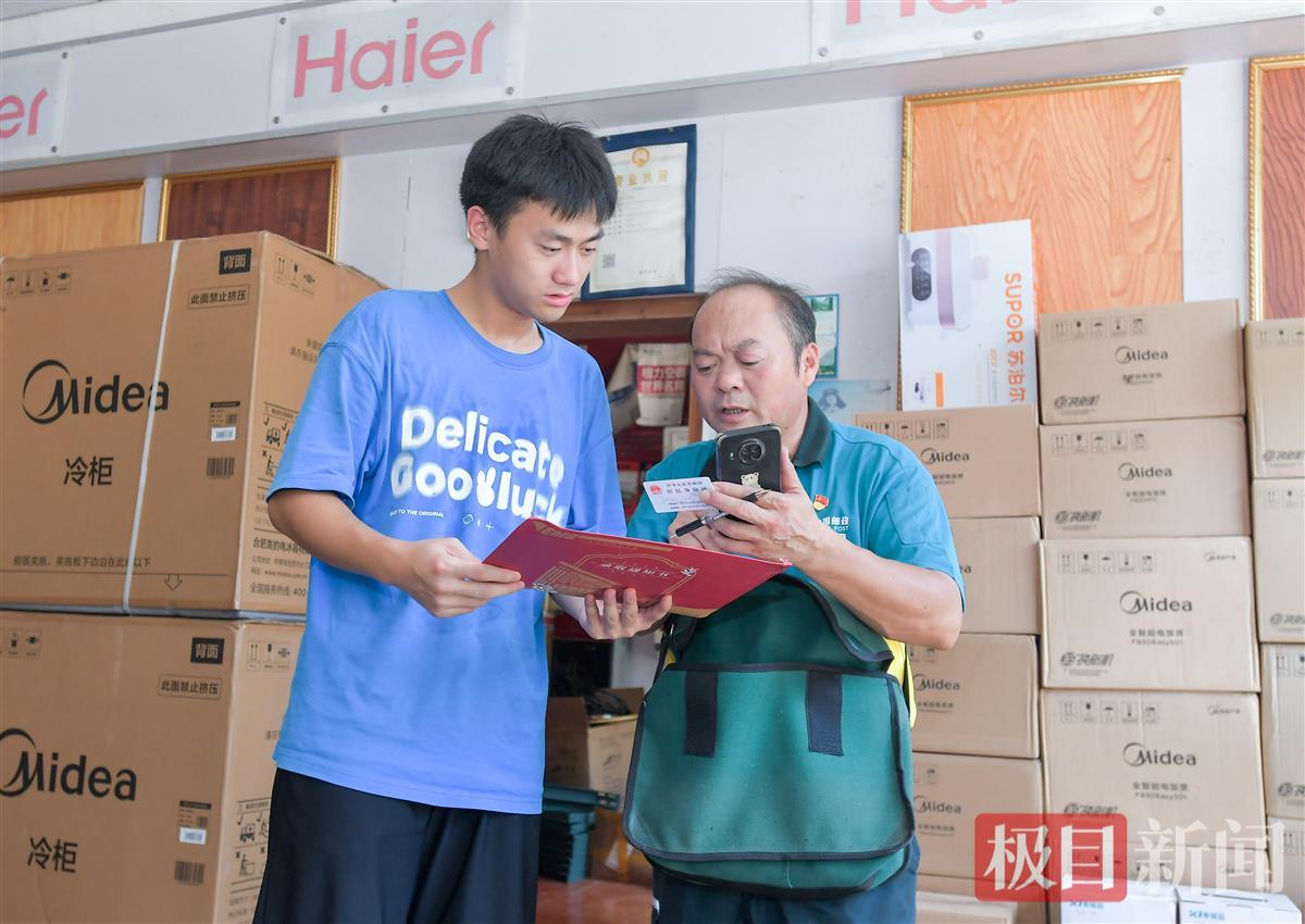看着父亲常年风吹日晒变得黝黑的面庞,坐在一边的熊文康有些动容地说:“这封通知书因为是父亲亲自投递的,有了更加特别的意义!收到通知书,意味着之前的努力都没有白费,谢谢父母一直以来的付出。”